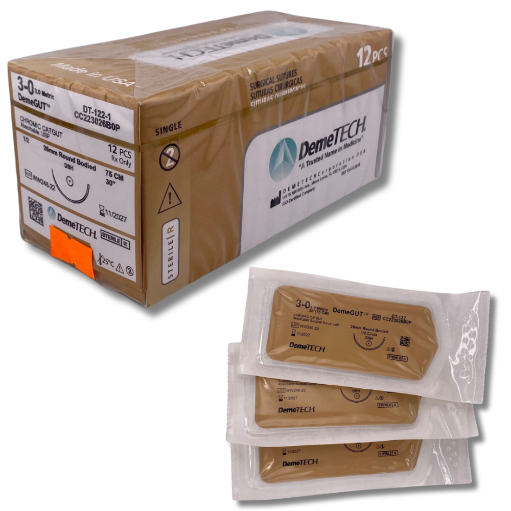 CATGUT CROMICO DEMETECH 3-0 75CM CAJA C/12