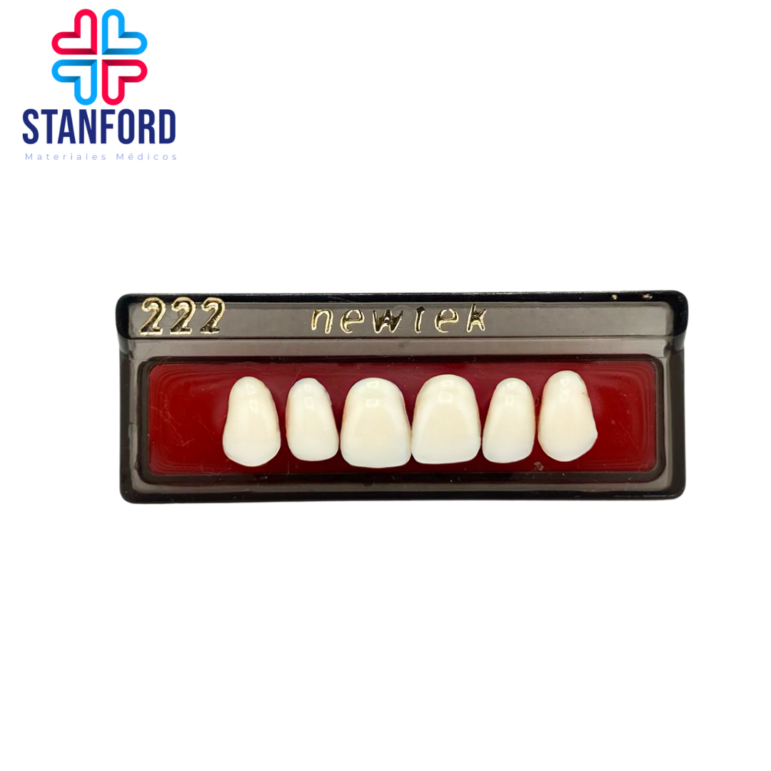 "Dientes de resina acrílica. Alta calidad en materiales y acabado, así como gran resistencia. Características: · crosslinked · fluorescencia natural · pigmentación computarizada · larga durabilidad. Tonos newhue: 59, 61, 62, 65, 66. Tonos vita: a1, a2, a3, a3.5, A4, b1, b2."