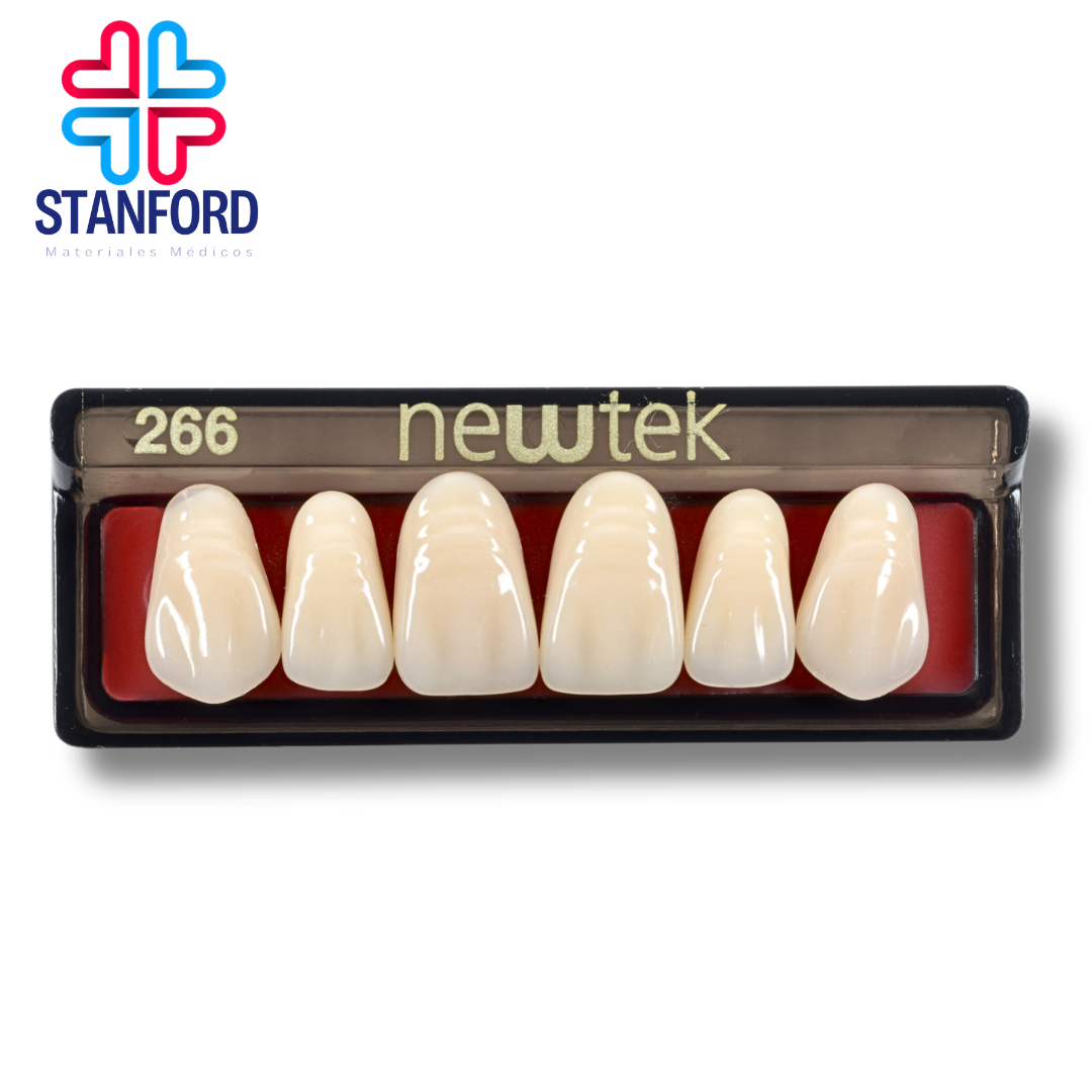 "Dientes de resina acrílica. Alta calidad en materiales y acabado, así como gran resistencia. Características: · crosslinked · fluorescencia natural · pigmentación computarizada · larga durabilidad. Tonos newhue: 59, 61, 62, 65, 66. Tonos vita: a1, a2, a3, a3.5, A4, b1, b2."