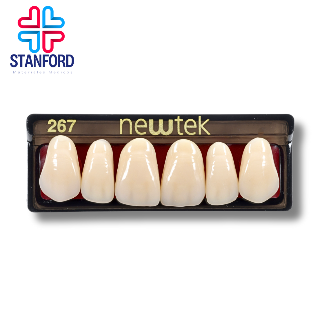 "Dientes de resina acrílica. Alta calidad en materiales y acabado, así como gran resistencia. Características: · crosslinked · fluorescencia natural · pigmentación computarizada · larga durabilidad. Tonos newhue: 59, 61, 62, 65, 66. Tonos vita: a1, a2, a3, a3.5, A4, b1, b2."