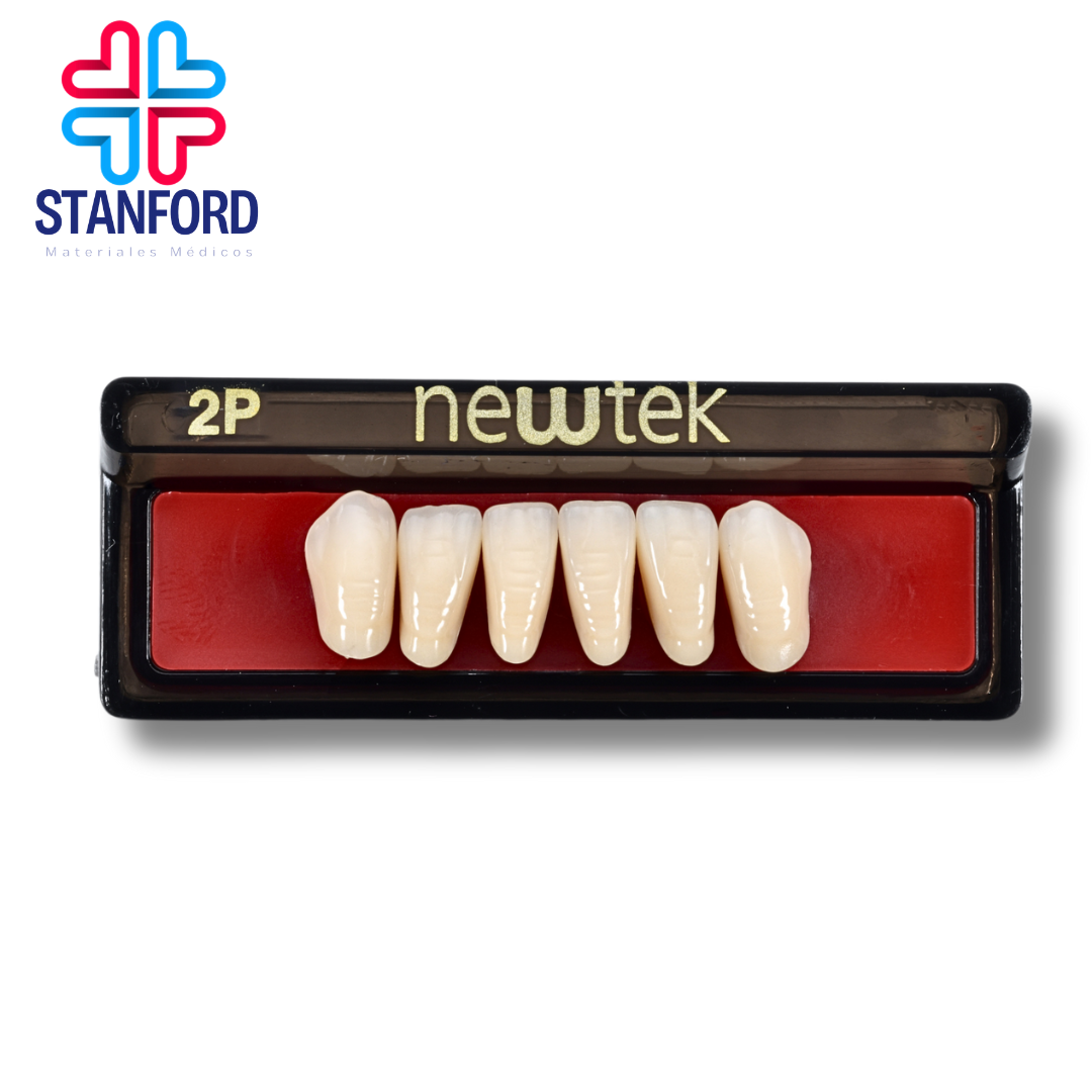 "Dientes de resina acrílica. Alta calidad en materiales y acabado, así como gran resistencia. Características: · crosslinked · fluorescencia natural · pigmentación computarizada · larga durabilidad. Tonos newhue: 59, 61, 62, 65, 66. Tonos vita: a1, a2, a3, a3.5, A4, b1, b2."