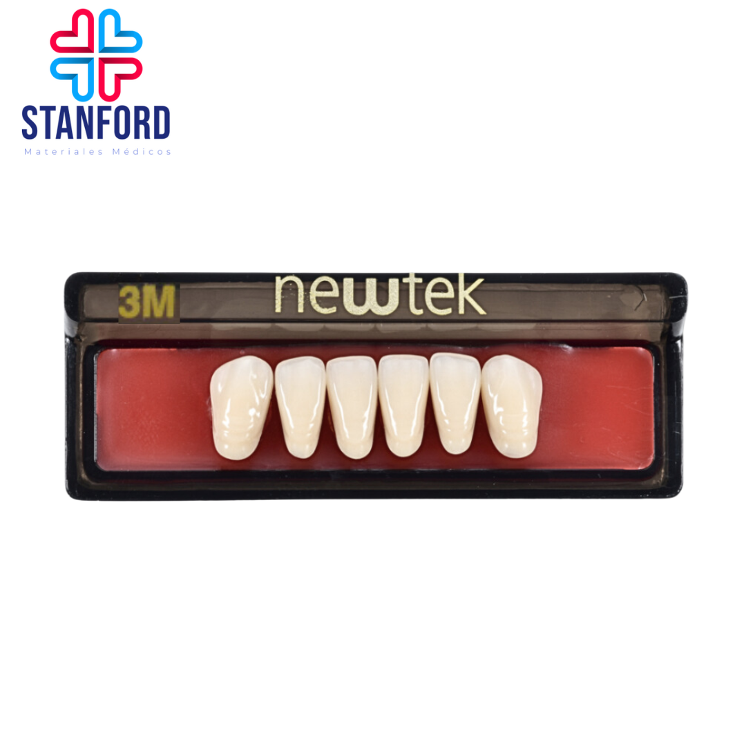 "Dientes de resina acrílica. Alta calidad en materiales y acabado, así como gran resistencia. Características: · crosslinked · fluorescencia natural · pigmentación computarizada · larga durabilidad. Tonos newhue: 59, 61, 62, 65, 66. Tonos vita: a1, a2, a3, a3.5, A4, b1, b2."