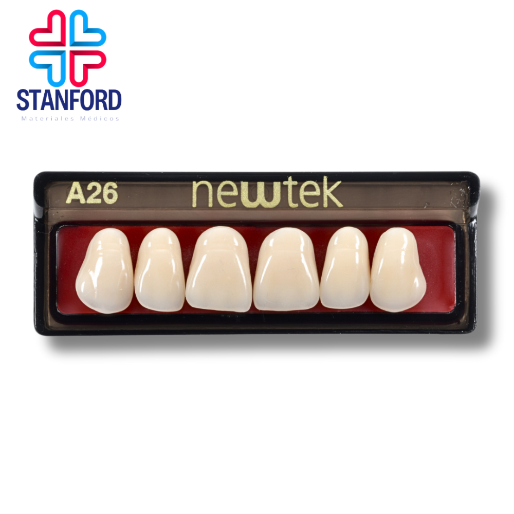 "Dientes de resina acrílica. Alta calidad en materiales y acabado, así como gran resistencia. Características: · crosslinked · fluorescencia natural · pigmentación computarizada · larga durabilidad. Tonos newhue: 59, 61, 62, 65, 66. Tonos vita: a1, a2, a3, a3.5, A4, b1, b2."