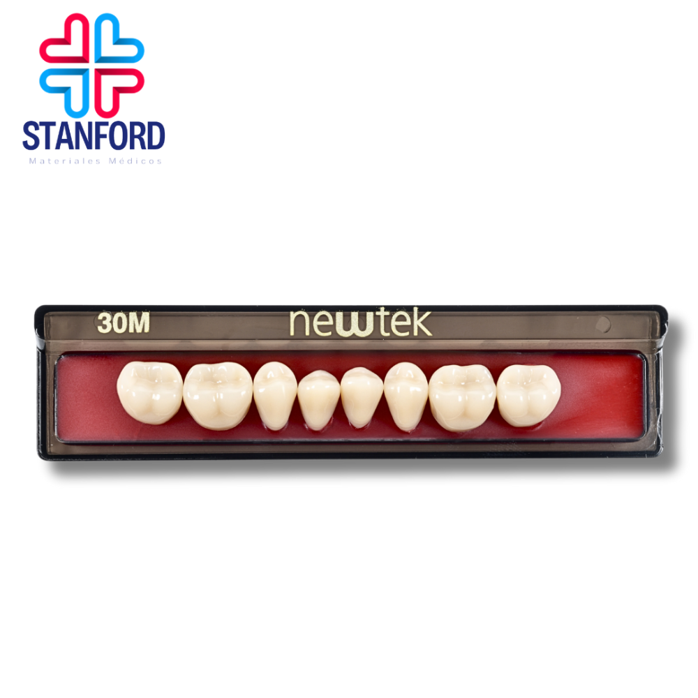 "Dientes de resina acrílica. Alta calidad en materiales y acabado, así como gran resistencia. Características: · crosslinked · fluorescencia natural · pigmentación computarizada · larga durabilidad. Tonos newhue: 59, 61, 62, 65, 66. Tonos vita: a1, a2, a3, a3.5, A4, b1, b2."