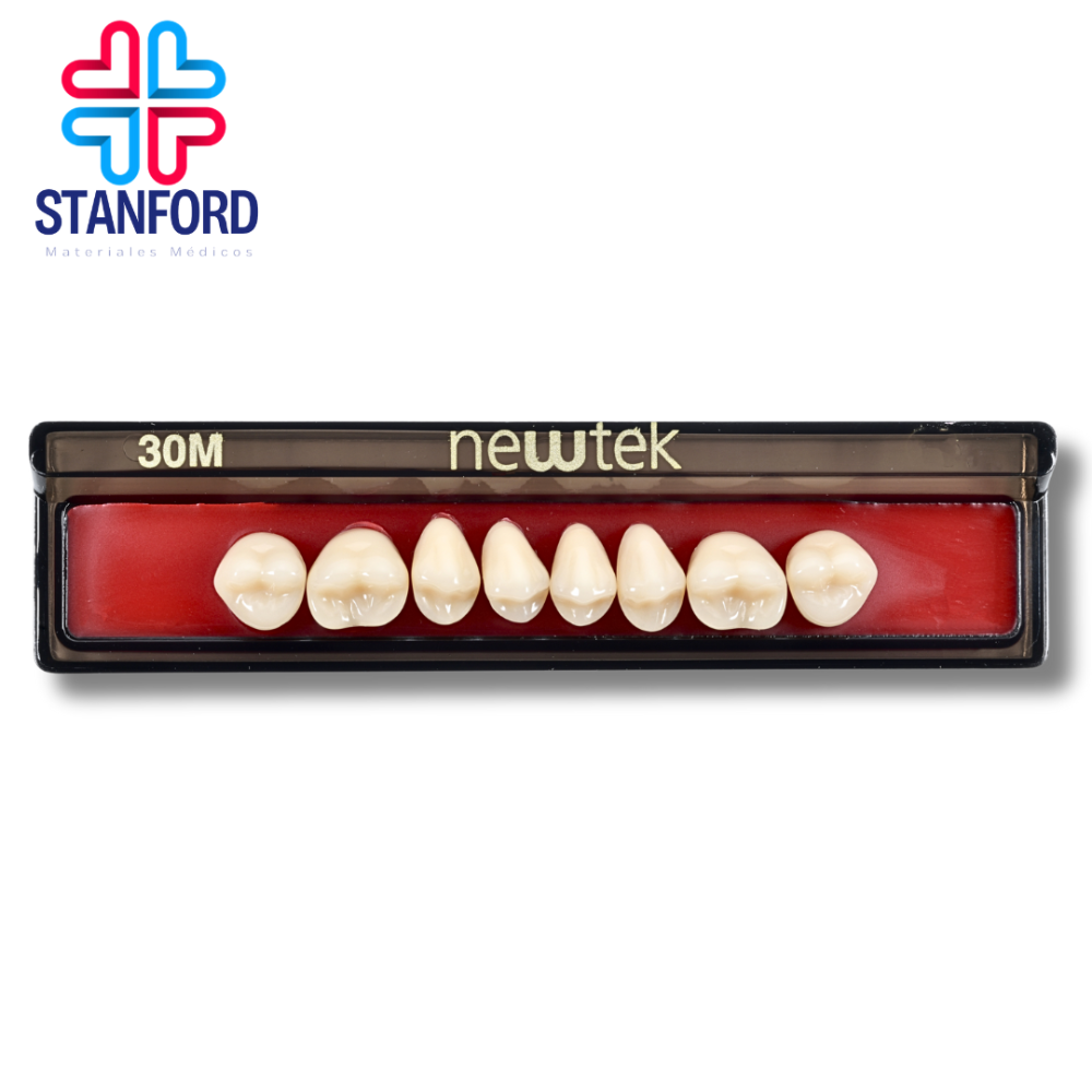 "Dientes de resina acrílica. Alta calidad en materiales y acabado, así como gran resistencia. Características: · crosslinked · fluorescencia natural · pigmentación computarizada · larga durabilidad. Tonos newhue: 59, 61, 62, 65, 66. Tonos vita: a1, a2, a3, a3.5, A4, b1, b2."