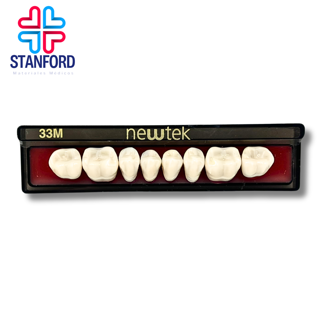 "Dientes de resina acrílica. Alta calidad en materiales y acabado, así como gran resistencia. Características: · crosslinked · fluorescencia natural · pigmentación computarizada · larga durabilidad. Tonos newhue: 59, 61, 62, 65, 66. Tonos vita: a1, a2, a3, a3.5, A4, b1, b2."