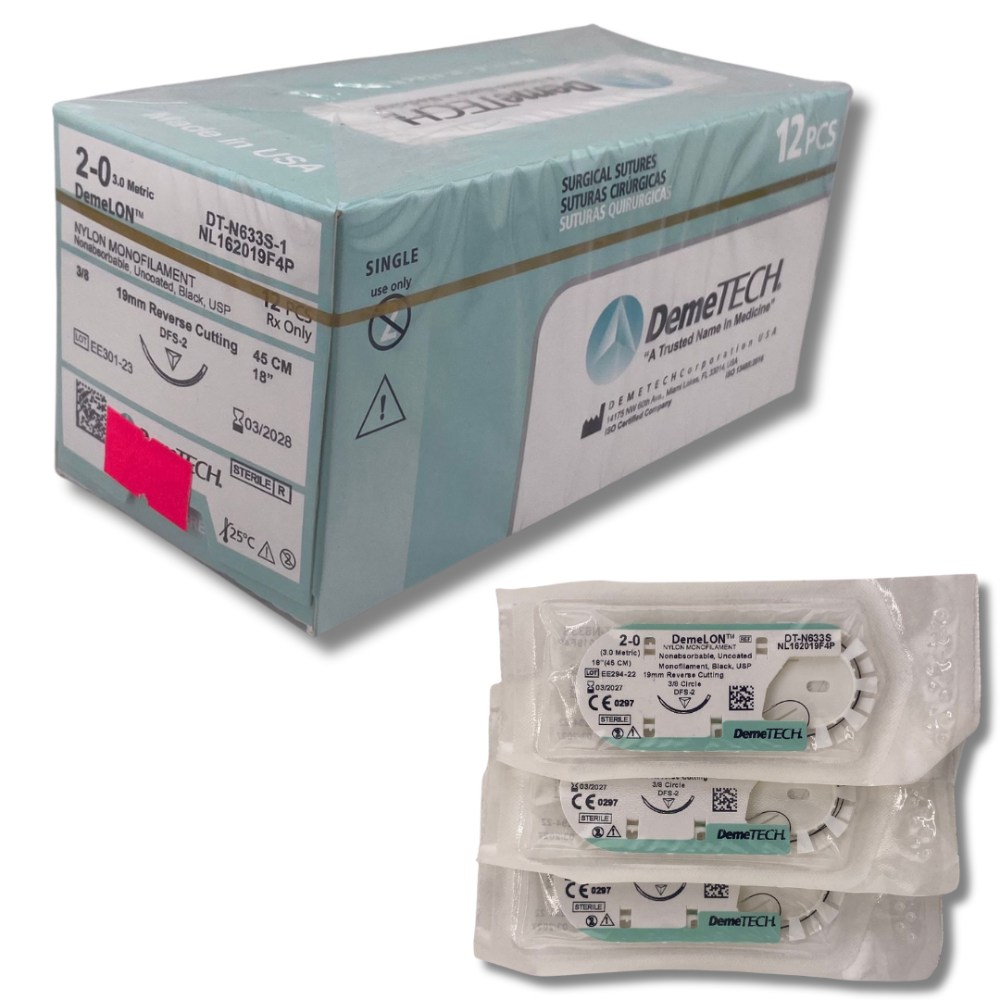 NYLON MONOFILAMENT 2/0 45CM 19MM 3/8 REVERSO CAJA C/12